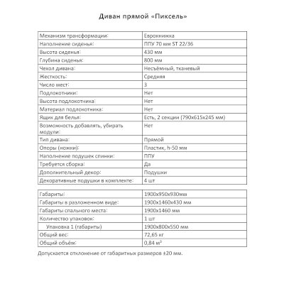 Диван Пиксель (Аквилон) продается в интернет-магазине mebelin-naro-fominsk.ru по цене 30 299 руб. Есть доставка по Наро-Фоминску и Московской области. Возможность подъема на этаж и сборки уточняйте у менеджера по телефону 8(800)505-27-11.